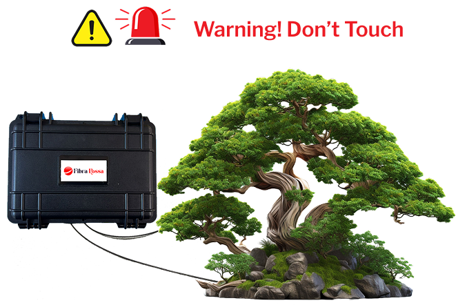 FIBRA ROSSA, a fibra optic cable system protecting your BonsaiTree, goods products, jewelry in cabinets without opening the cabinets or removing.